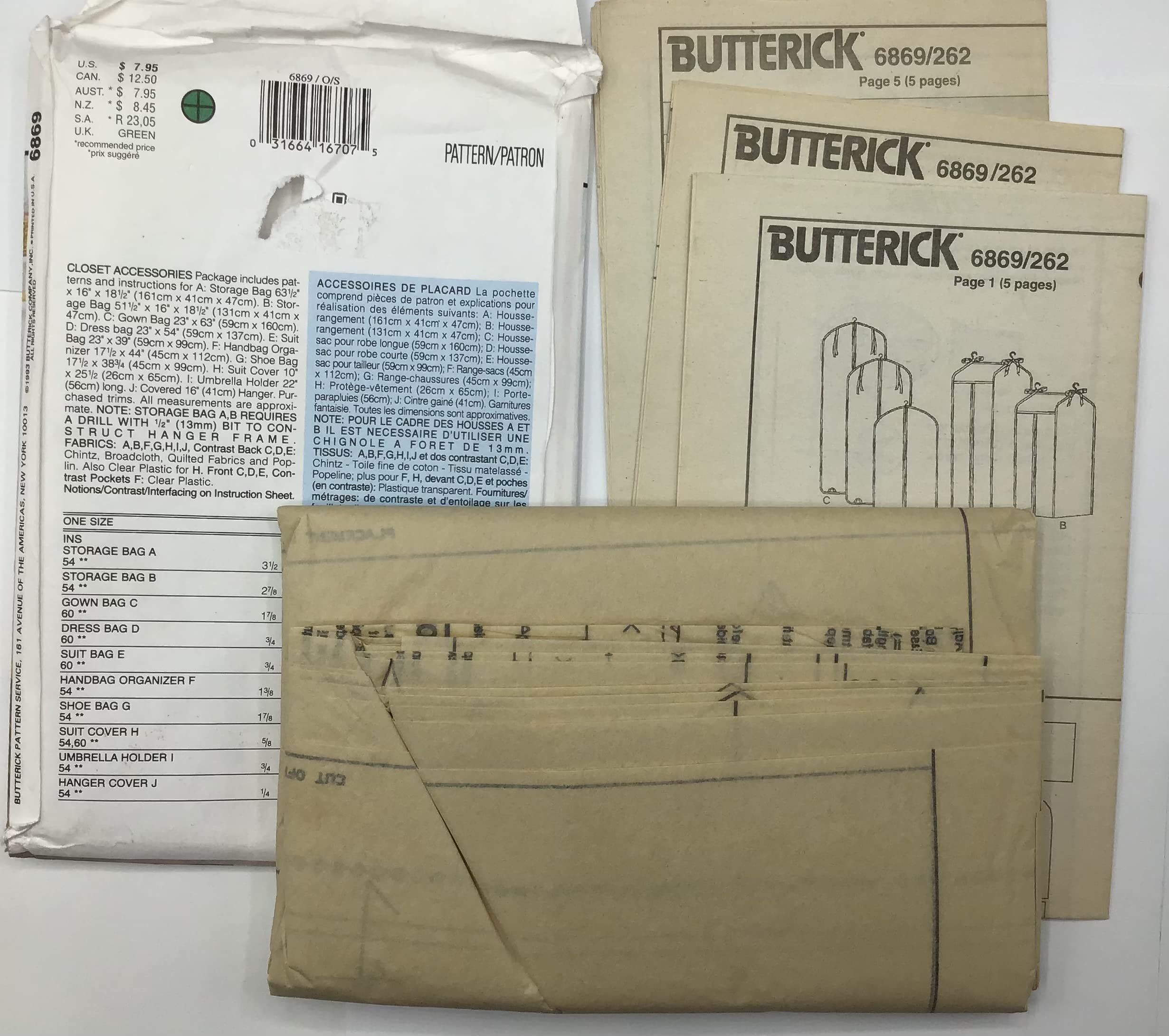Amazon Com Butterick 6869 Sewing Pattern Closet Storage Bags Shoe Gown Dress Suit Arts Crafts Sewing